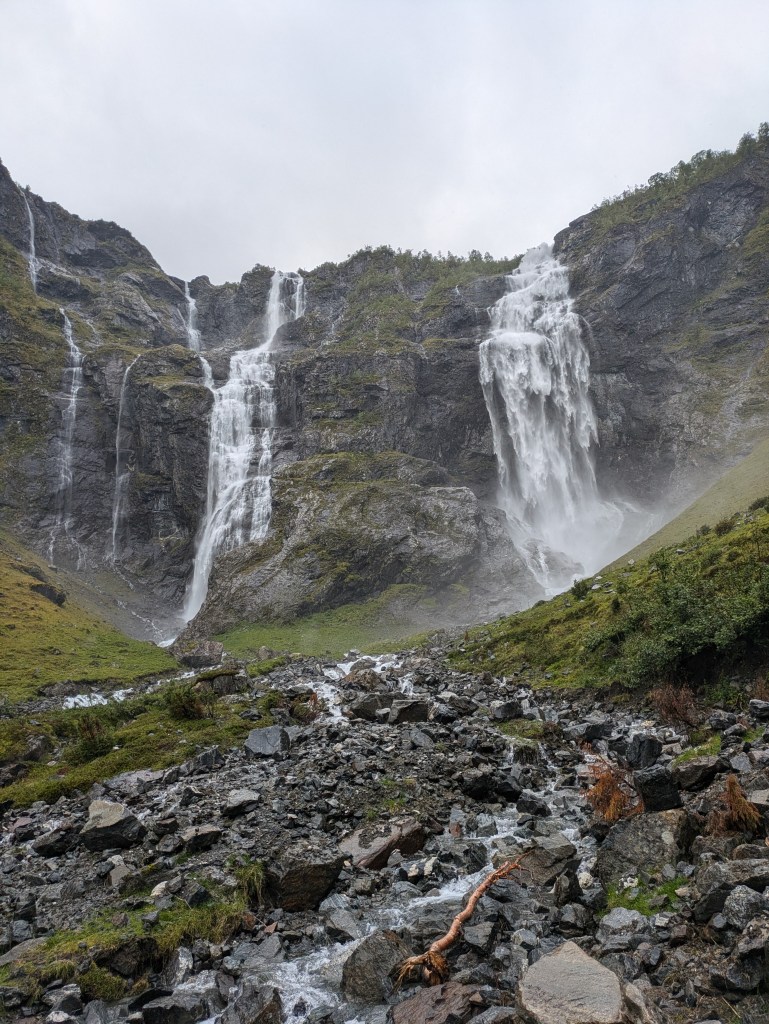We travelled to Voss which is a lovely little town 1.5hours away from Vik i Sogn. Whilst we were travelling through a heavy downpour, the skies cleared and the sun came out for our arrival in Voss. We parked up and started the Bordalsgjelet Gorge hike, a short hike to a tucked away gorge amongst the local residents’ homes.