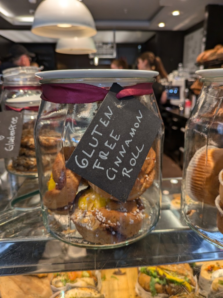 In the hunt for something sweet after lunch, I found Baker Brun which had gluten-free and dairy-free options. I went for a gluten-free cinnamon bun.