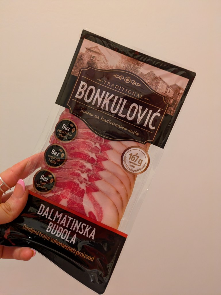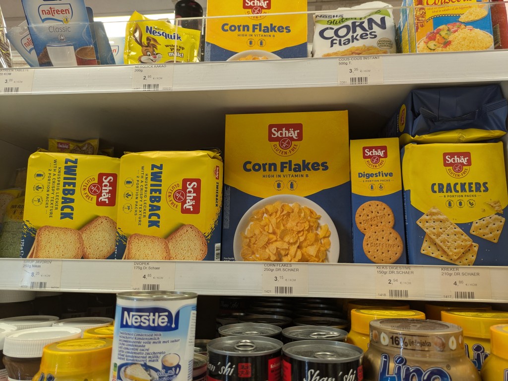 When arriving in Dubrovnik I headed to the local supermarkets, Studenac and Prima to check out their gluten-free produce. I wasn’t too hopeful, but I needn’t have been so pessimistic as they offered a number of gluten-free treats including plenty of Schar cereals, biscuits, crackers, local ham and crisps. Each were clearly labelled.