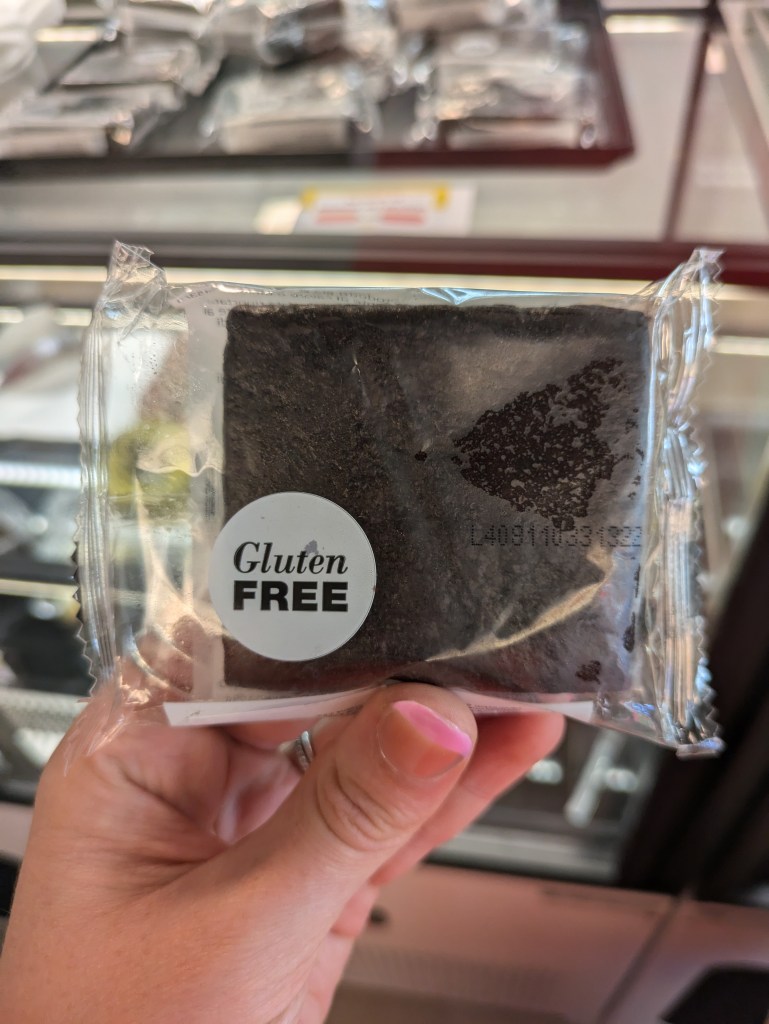 Whilst I was waiting for my flight I had a wander around the terminal shops and restaurants and came across a few clearly labelled gluten-free options like this brownie.